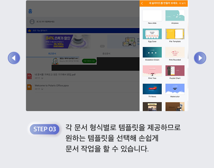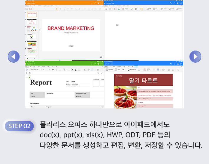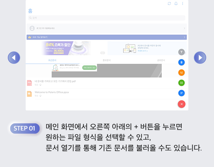 폴라리스 오피스 앱으로 빠르게 문서를 작성하고 수정하고 Documents 앱으로 저장한 문서를 편리하게 관리해요.