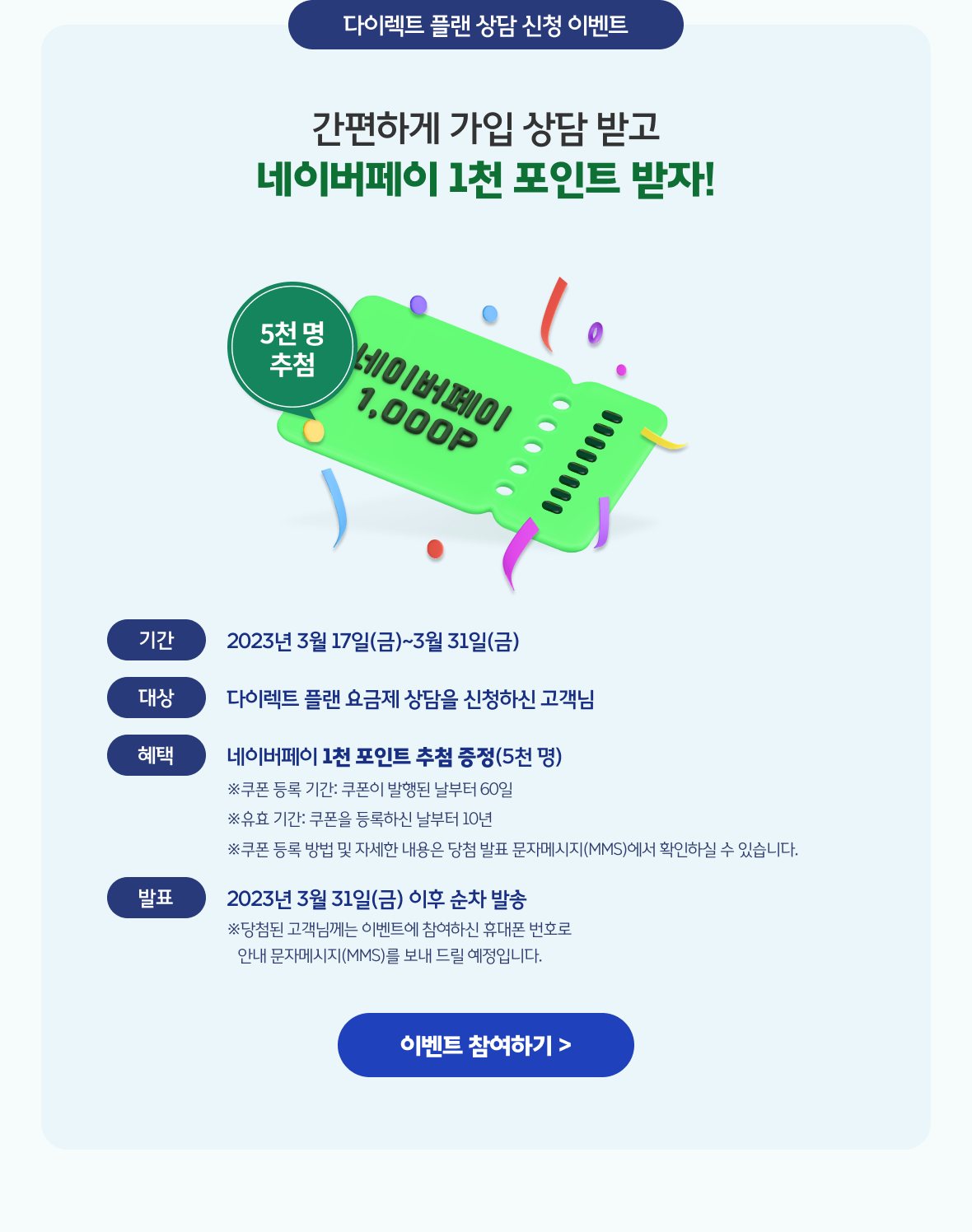 간편하게 가입 상담 받고 네이버페이 1천 포인트 받자!