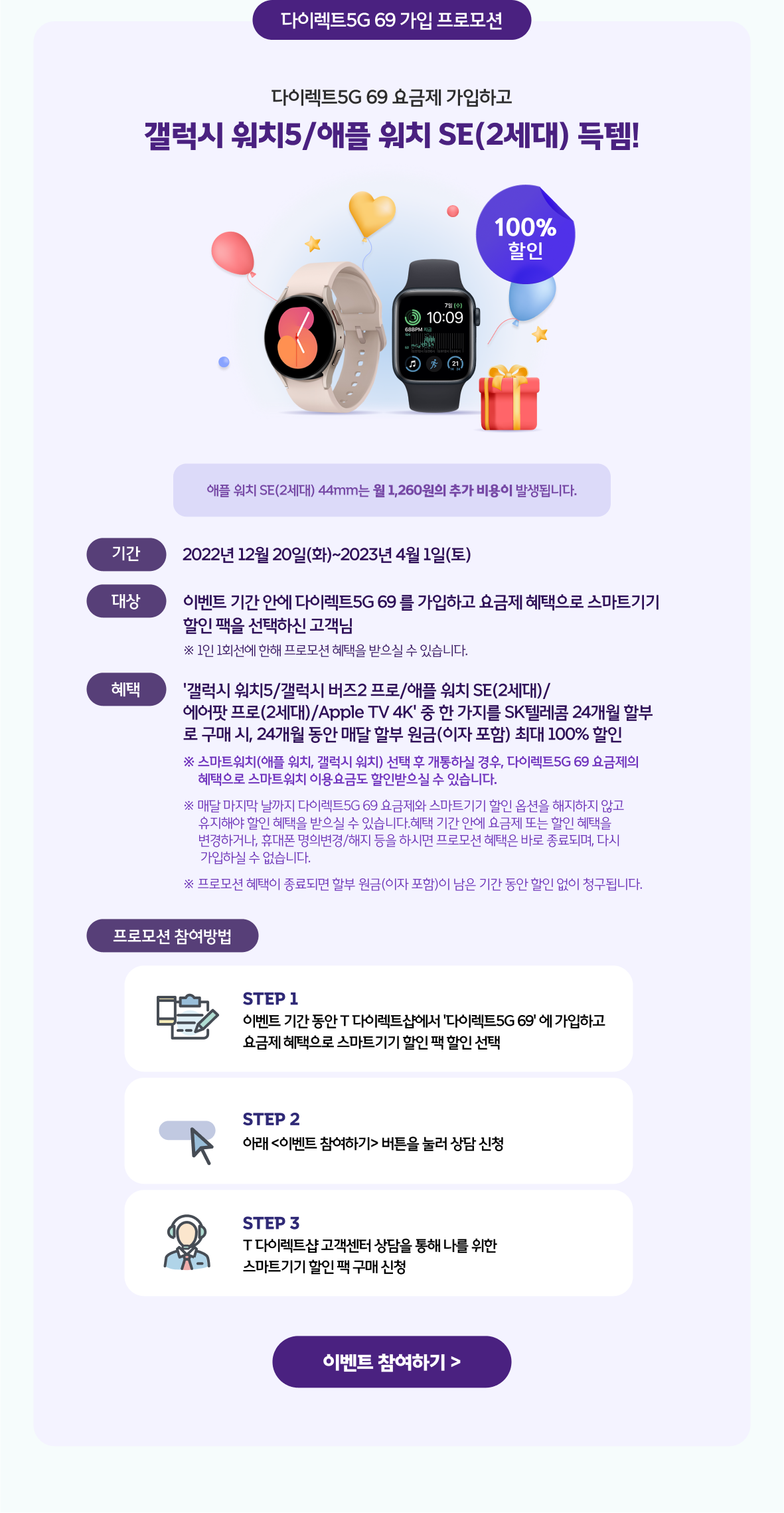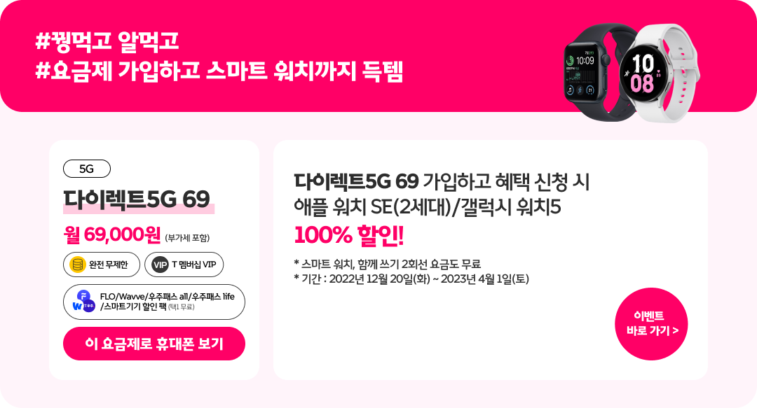 다이렉트5G 69 가입하고 갤럭시 워치5 / 애플 워치 SE(2세대) 득템!