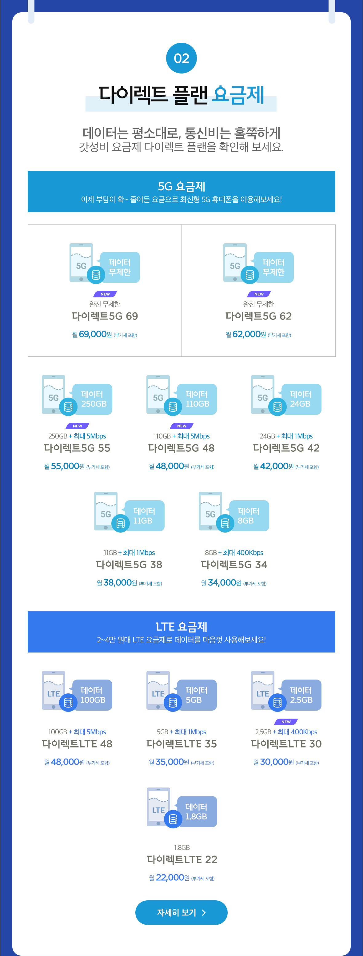 데이터는 평소대로, 통신비는 홀쭉하게 갓성비 요금제 다이렉트 플랜을 확인해 보세요.