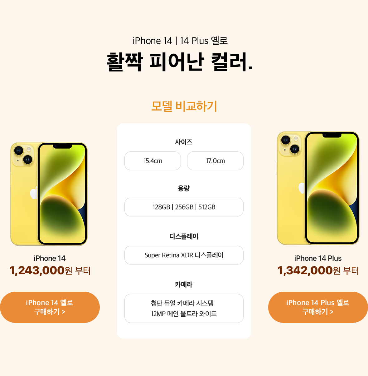 iPhone 14 : 1,243,000원 부터 / iPhone 14 Plus : 1,342,000원 부터