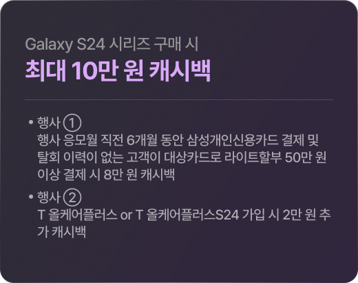 * 자세한 내용은 삼성닷컴 앱 또는 www.s24event.co.kr 에서 확인해 주세요.