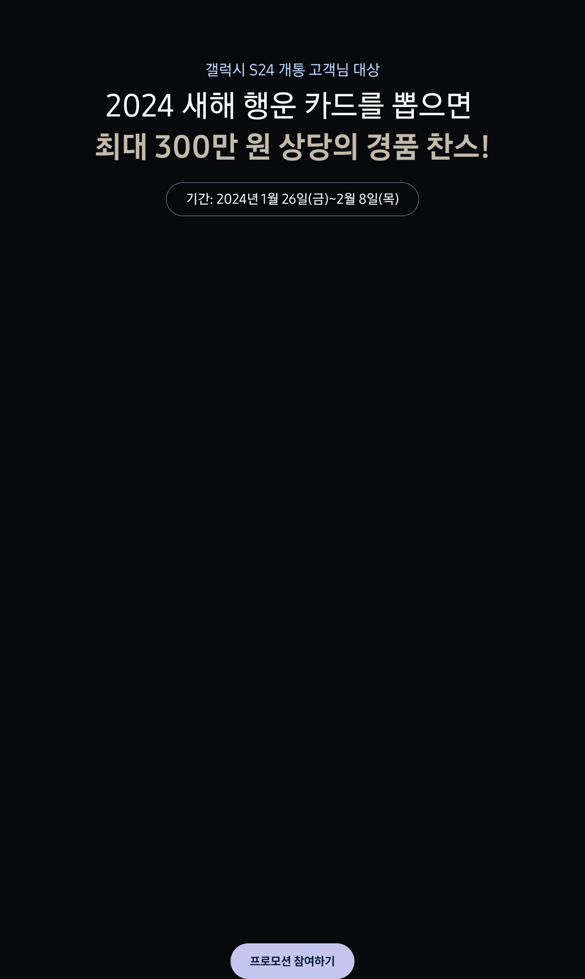 갤럭시 S24 고객님! 올해 이루고 싶은 것을 떠올리며 행운 카드를 뽑아 보세요.