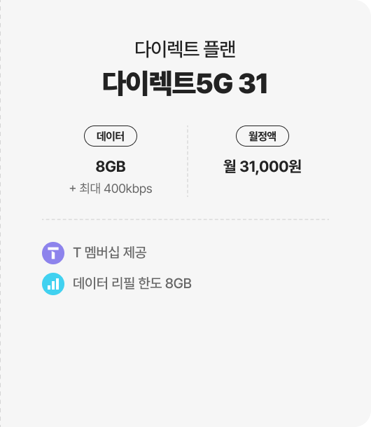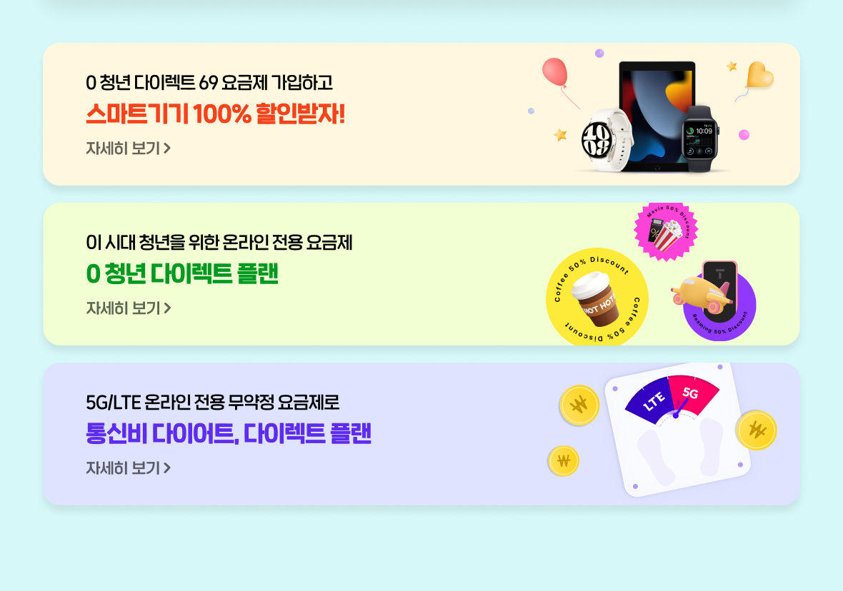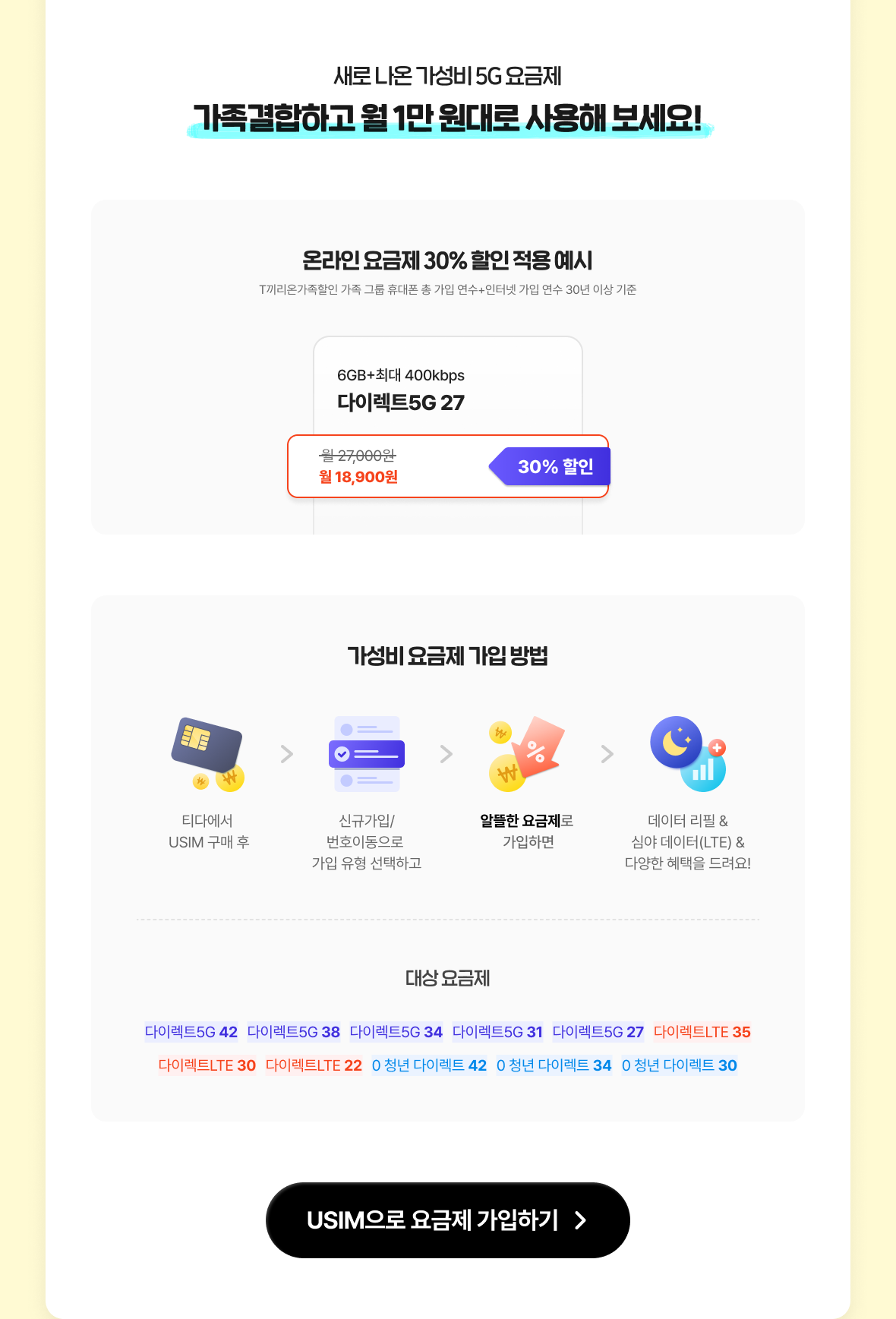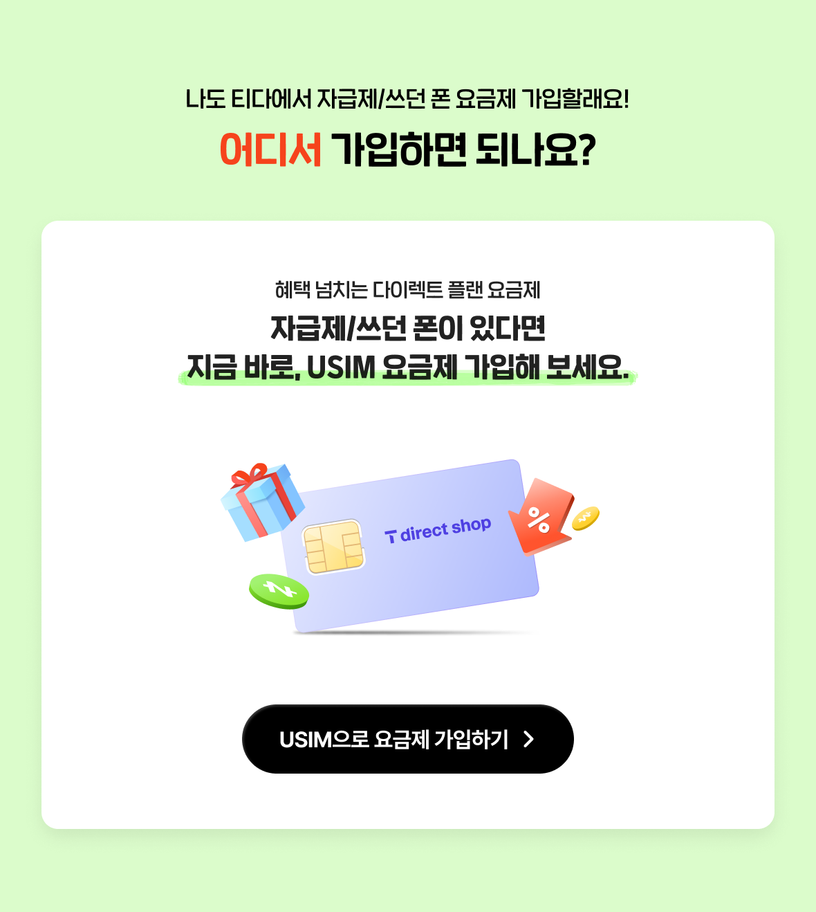 혜택 넘치는 다이렉트 플랜 요금제 자급제/쓰던 폰이 있다면 지금 바로, USIM 요금제 가입해 보세요.