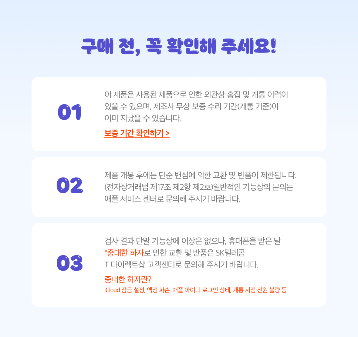 ※ 리패키징 제품은 애플 정품으로 공식 애플 서비스 센터에서 점검받으실 수 있습니다.