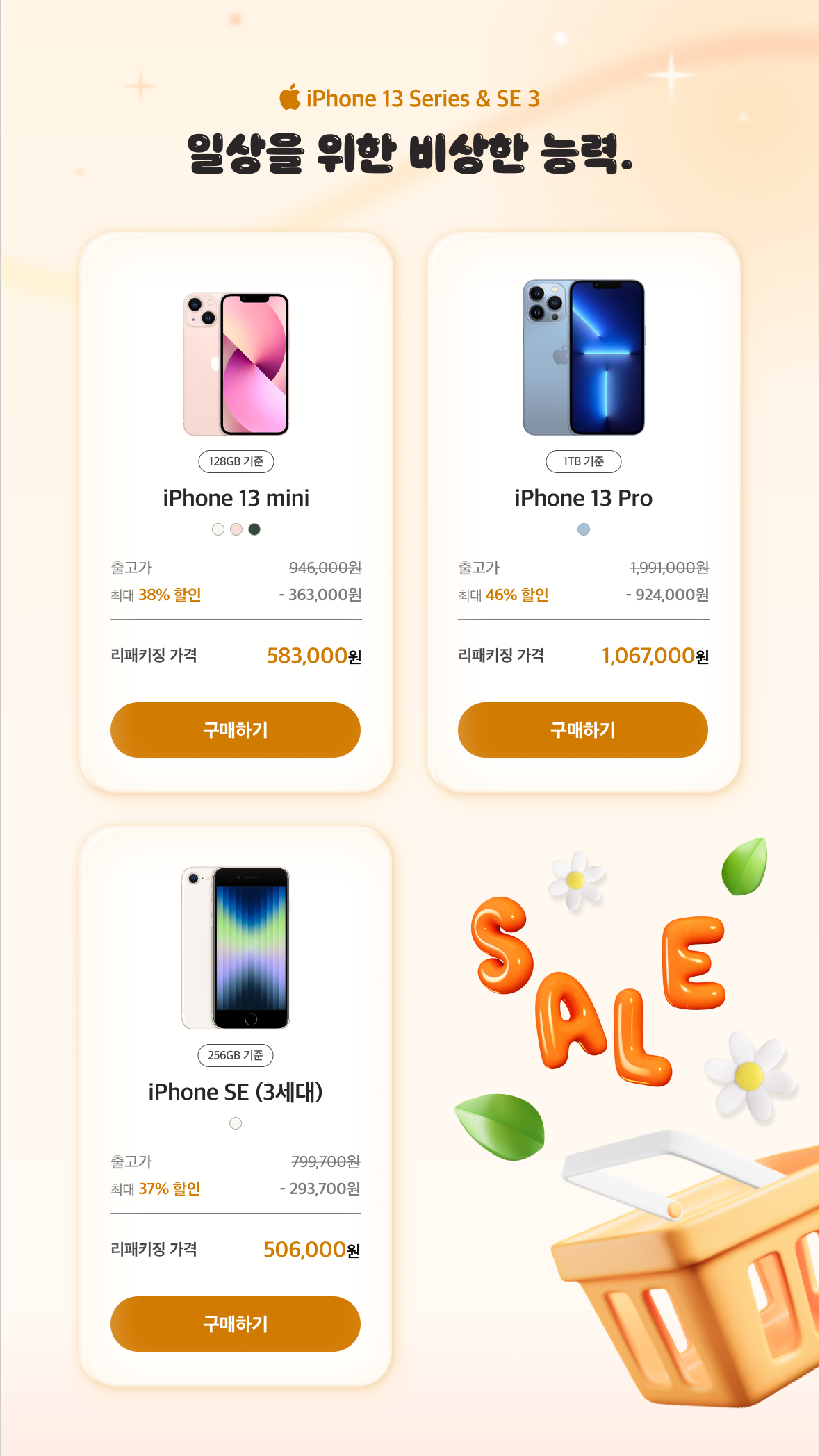 * 최대 46% 할인: iPhone 13 PRO 1TB 리패키징 기준
