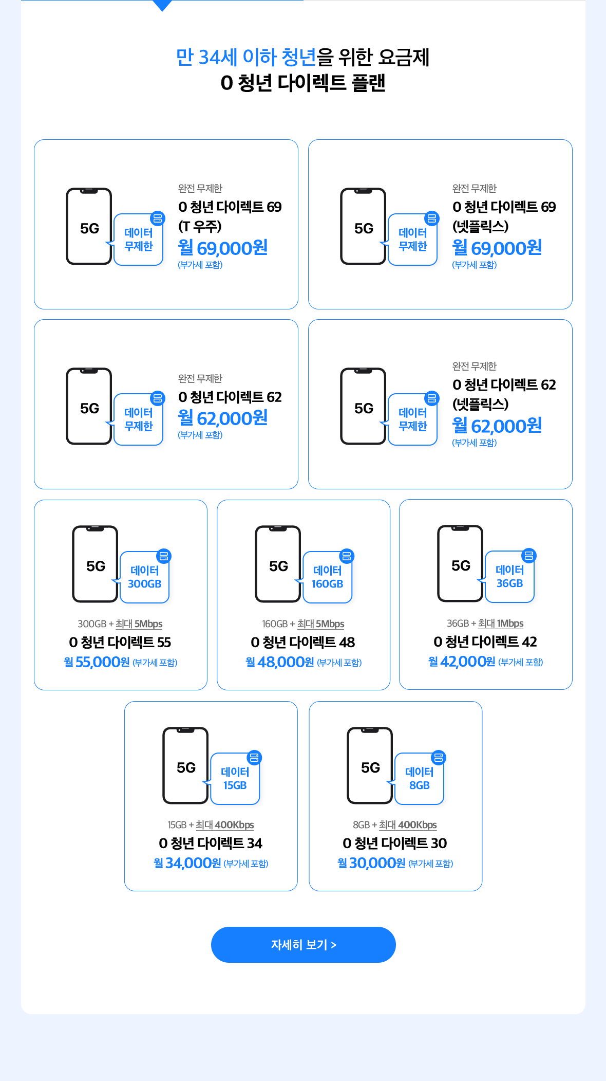만 34세 이하 청년을 위한 요금제 | 0 청년 다이렉트 플랜