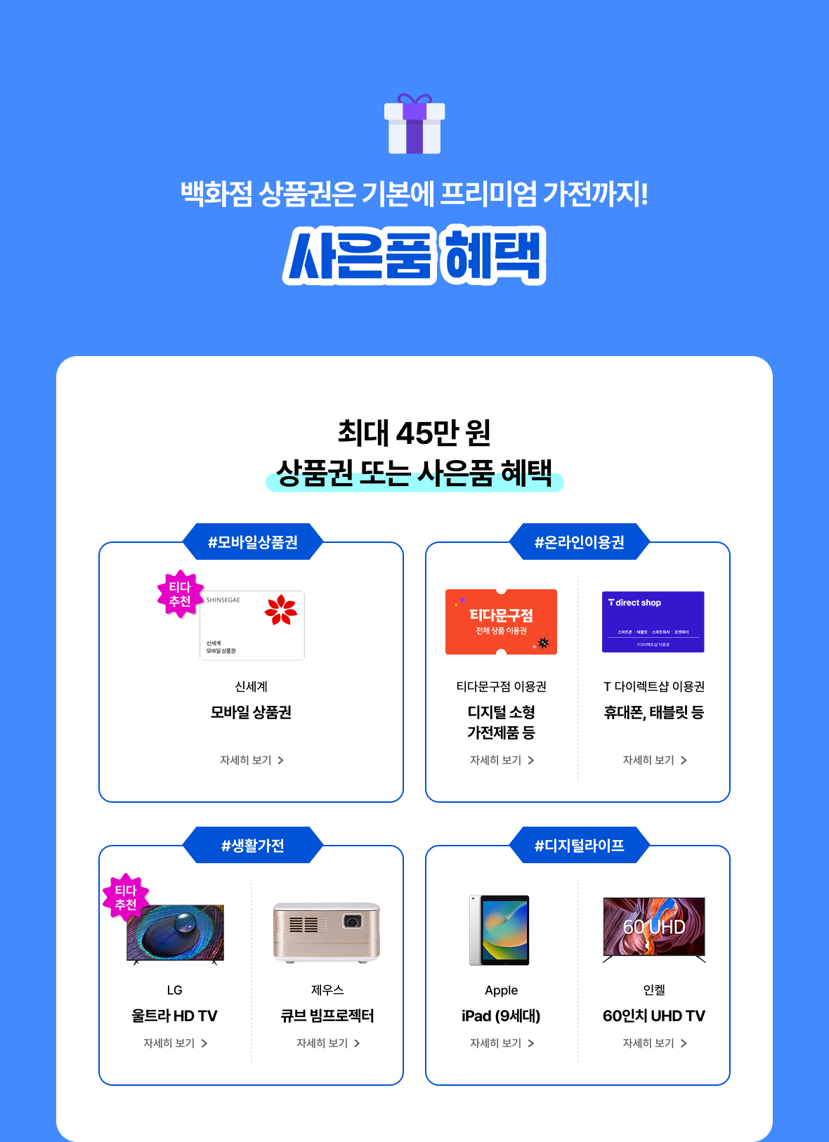 요금 할인 또는 사은품 나에게 맞는 혜택을 골라 보세요!