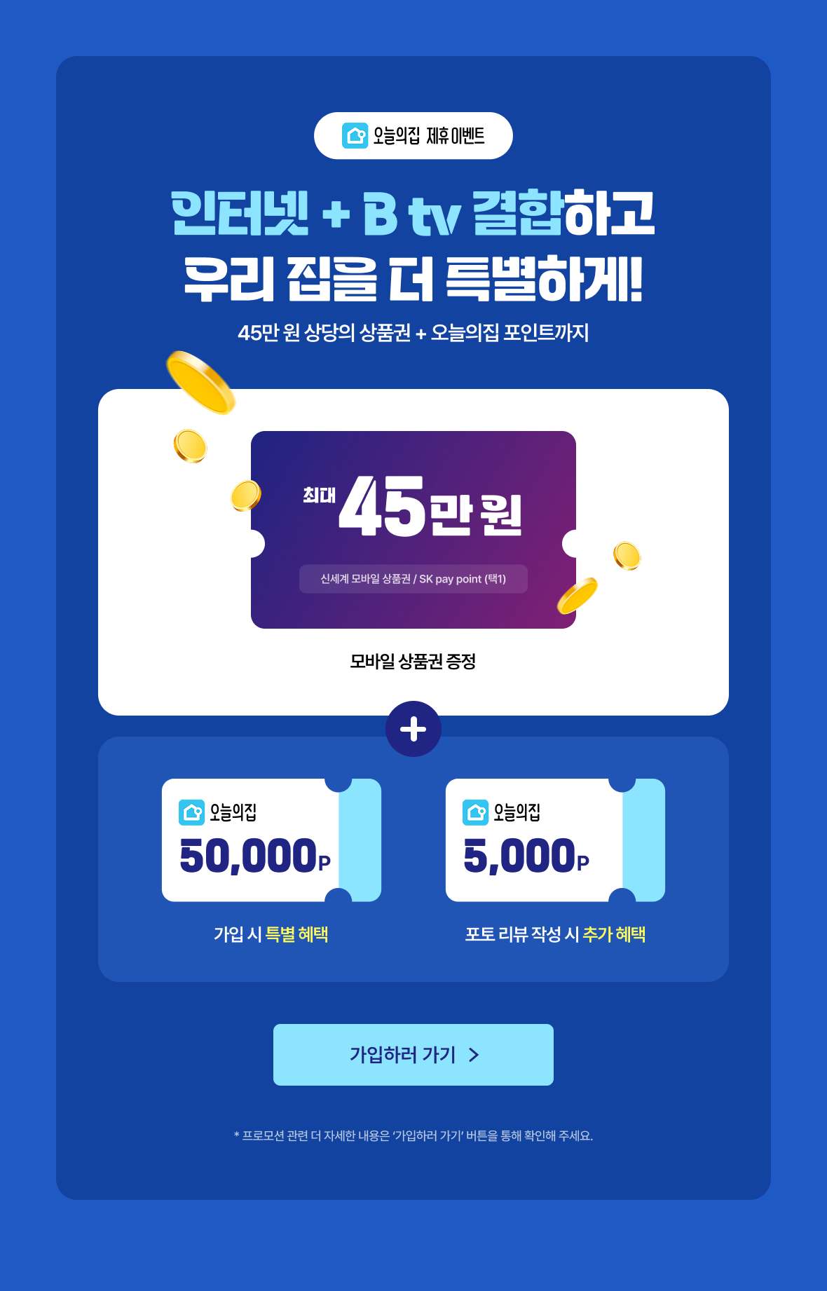 {500M 인터넷+Wi-Fi} + {B tv 스탠다드} = 월 22,000원
