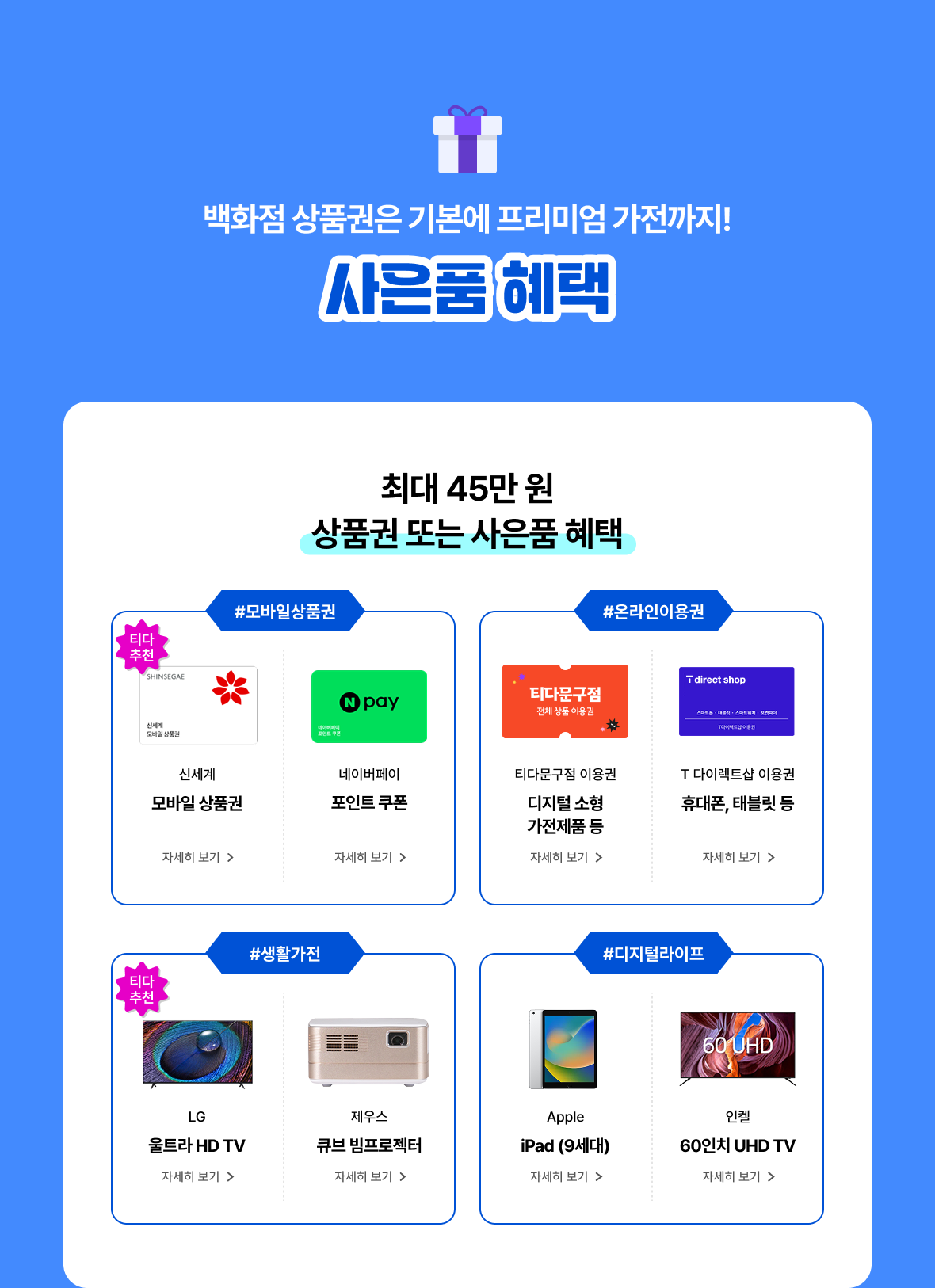 최대 45만 원 상품권 또는 사은품 혜택