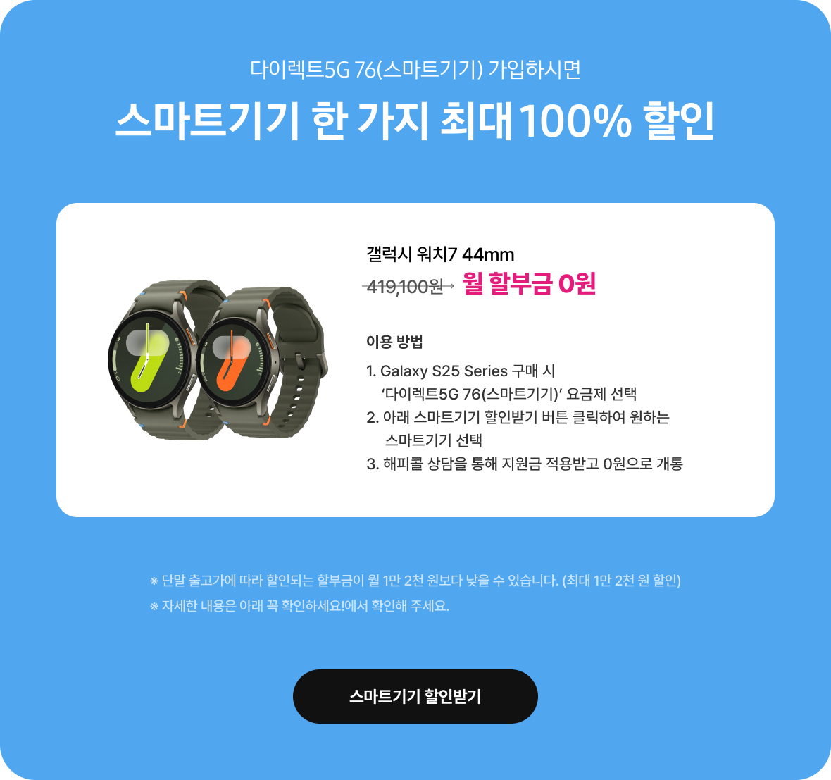 갤럭시 워치7 44mm 정상가 419,100원 > 월 할부금 0원