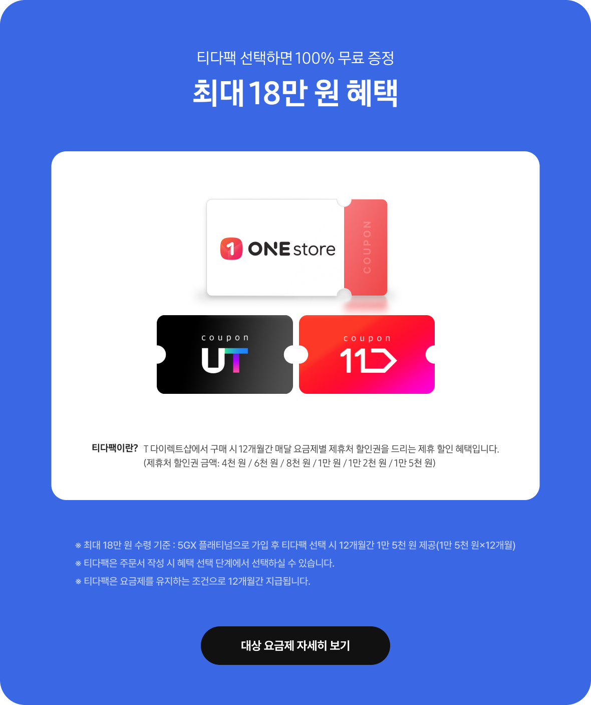 4,000원 | 다이렉트5G 42/38/34/31/27, 5G 시니어 B/C형, 컴팩트 | T플랜 세이브, 다이렉트LTE 22, T플랜 시니어 세이브, 0플랜 스몰, 0플랜 히어로, 주말엔 팅 세이브, LTE 0틴 플랜 스몰 |
