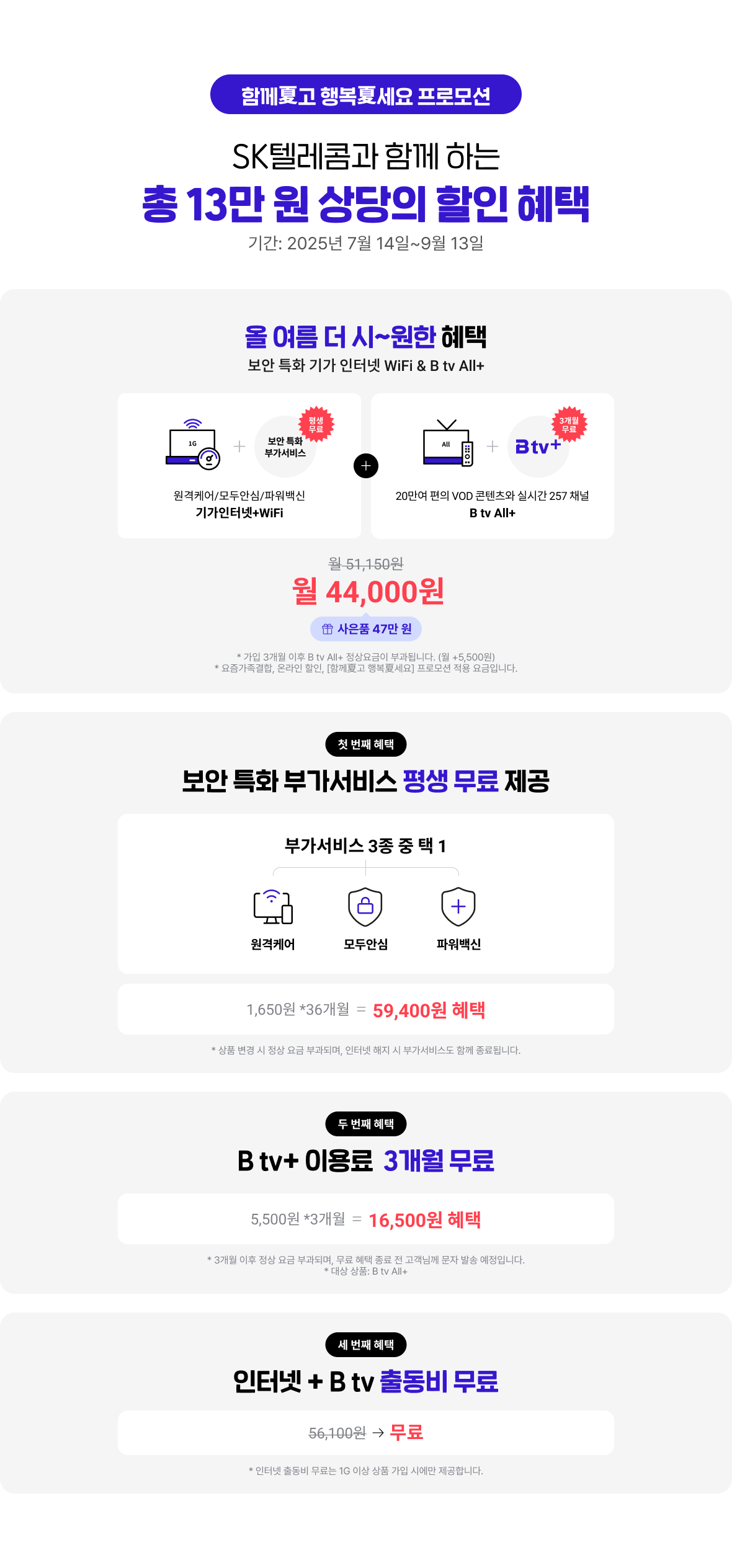 * 가입 3개월 이후 B tv All+ 정상요금이 부과됩니다. (월 +5,500원)