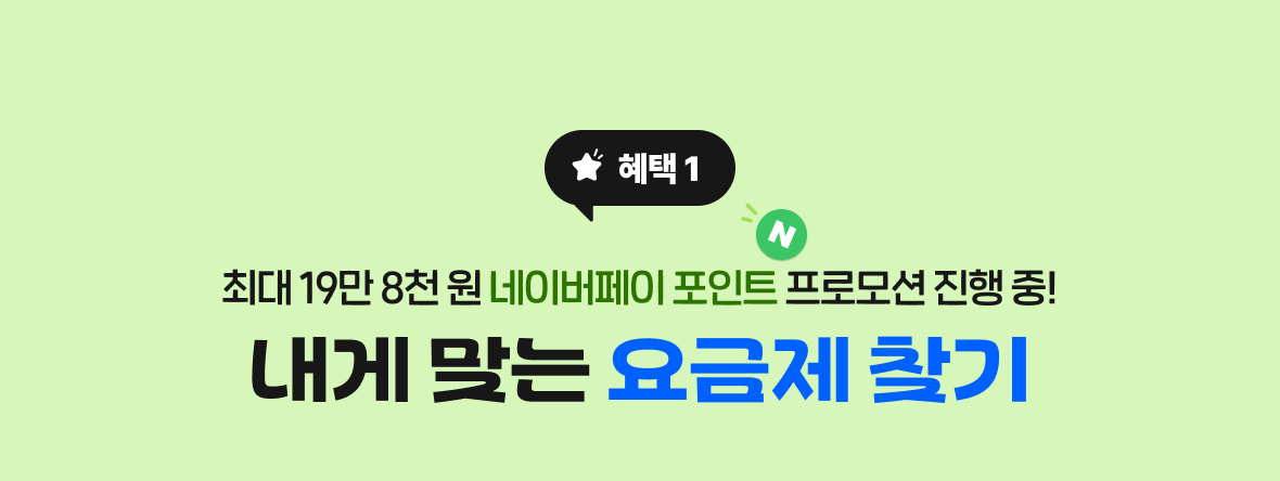 | 0 청년 다이렉트 42 월 42,000원 | 36GB + 최대 1Mbps | 네이버페이 포인트 총 6만 원 (3개월 동안 매달 2만 원) + 티빙 & 네이버웹툰 무료 (최대 6개월) |