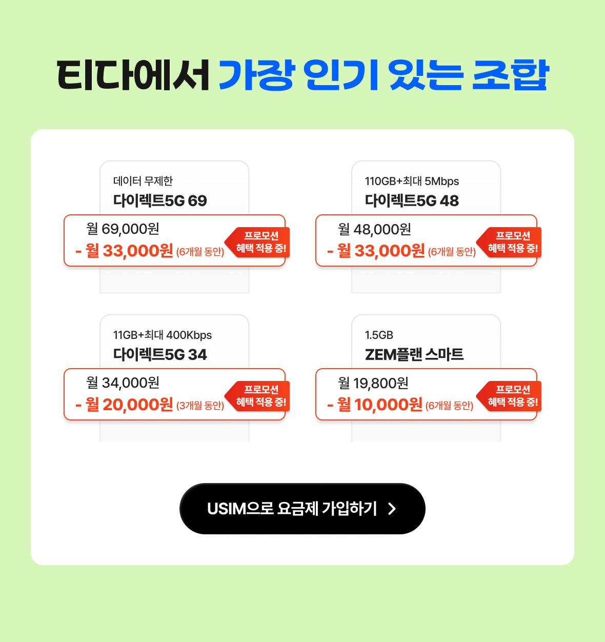 [다이렉트5G 48] 월 48,000원 > 프로모션 혜택가 월 15,000원