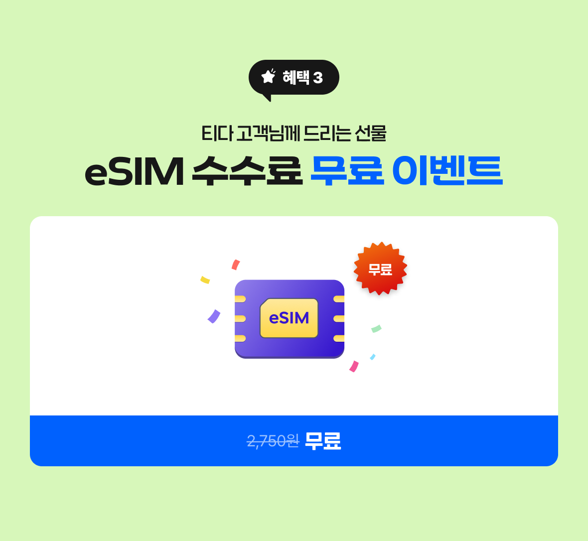 eSIM 정상가 2,750원 > 무료