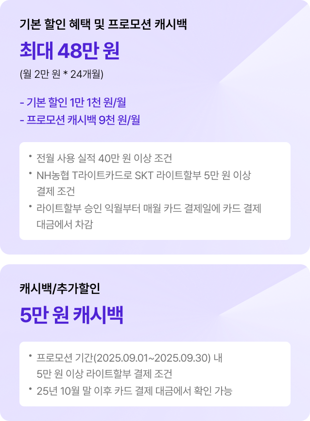 캐시백/추가 할인 5만 원 캐시백