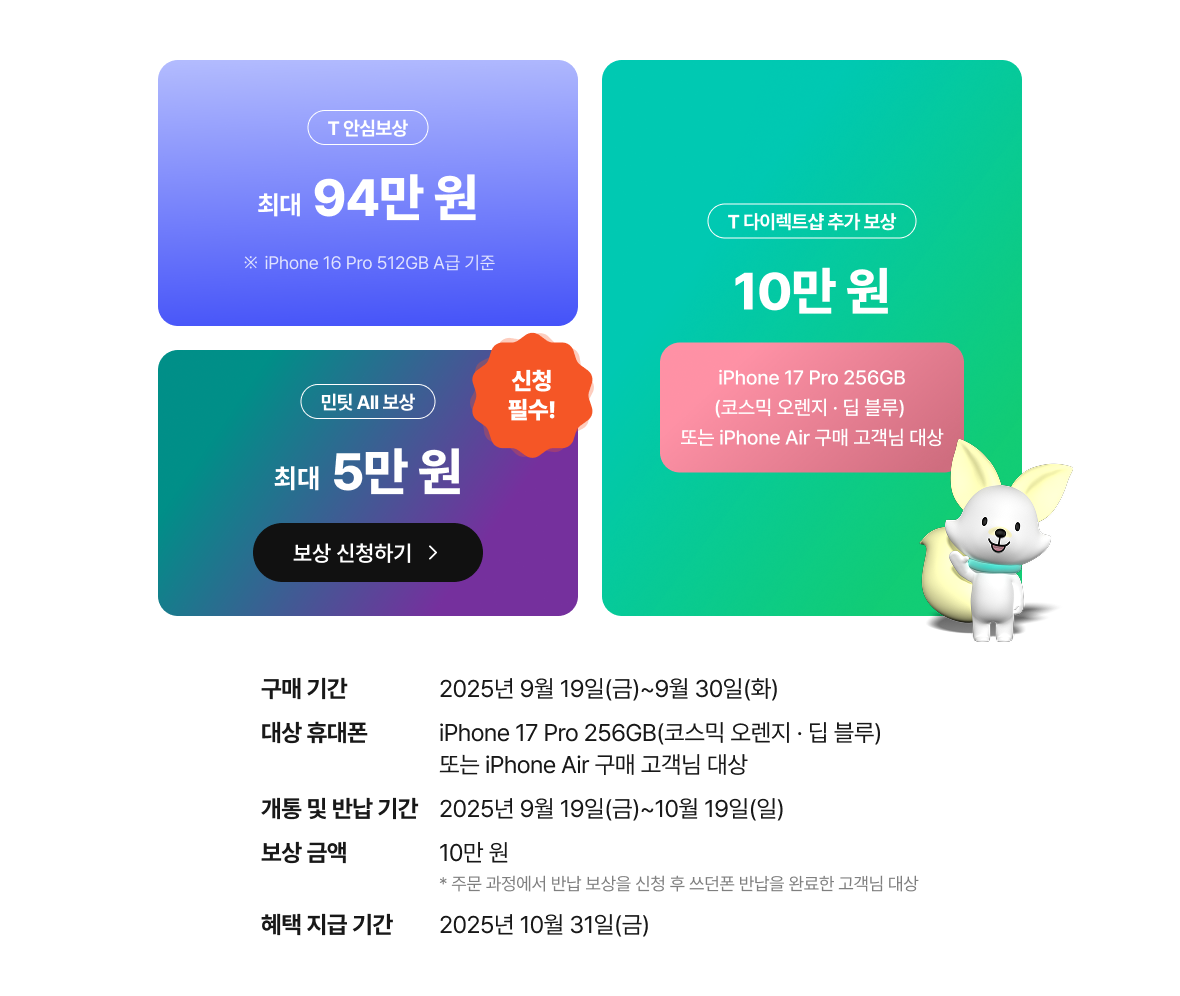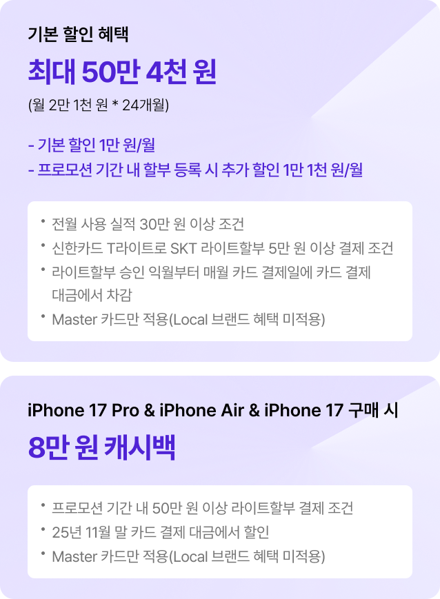 iPhone 17 Pro & iPhone Air & iPhone 17 구매 시 8만 원 캐시백