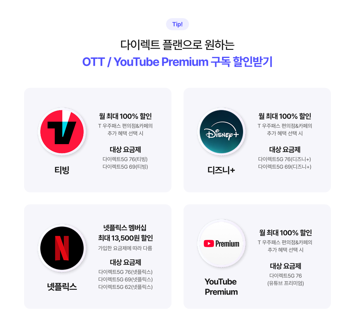 Tip!) 다이렉트 플랜으로 원하는 OTT / YouTube Premium 구독 할인받기