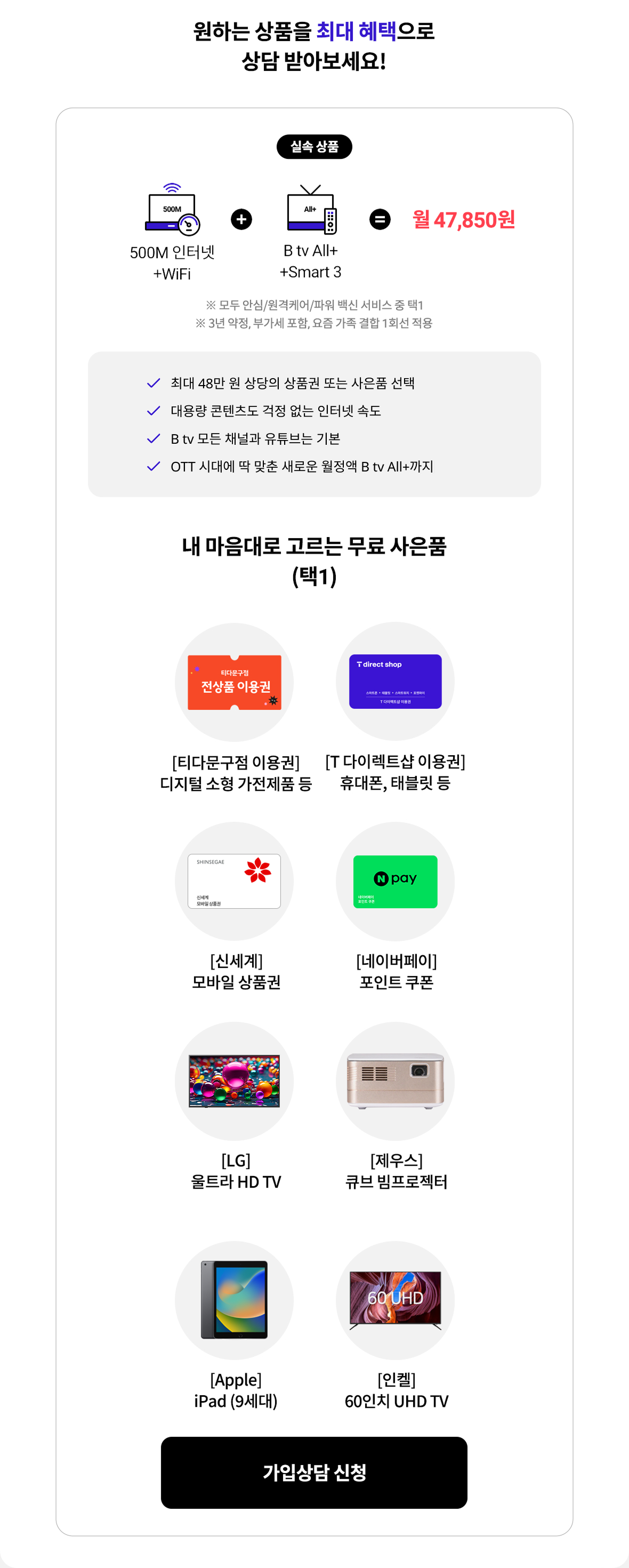 원하는 상품을 최대 혜택으로 상담 받아보세요!