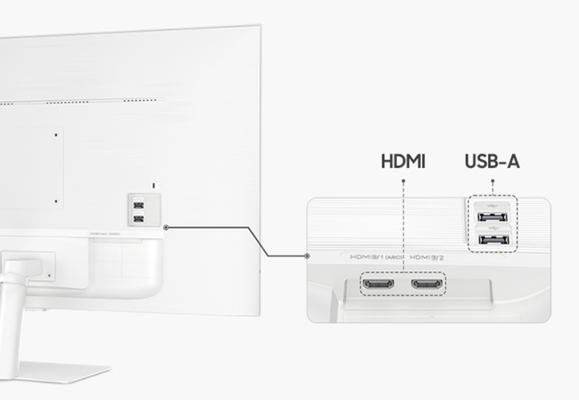 별도의 어댑터 지원 없이 HDMI 및 USB-A 포트로 기기를 손쉽게 모니터에 연결하고 맞춤형 설정을 할 수 있습니다. 나만의 멀티스크린 스테이션을 만들어보세요.