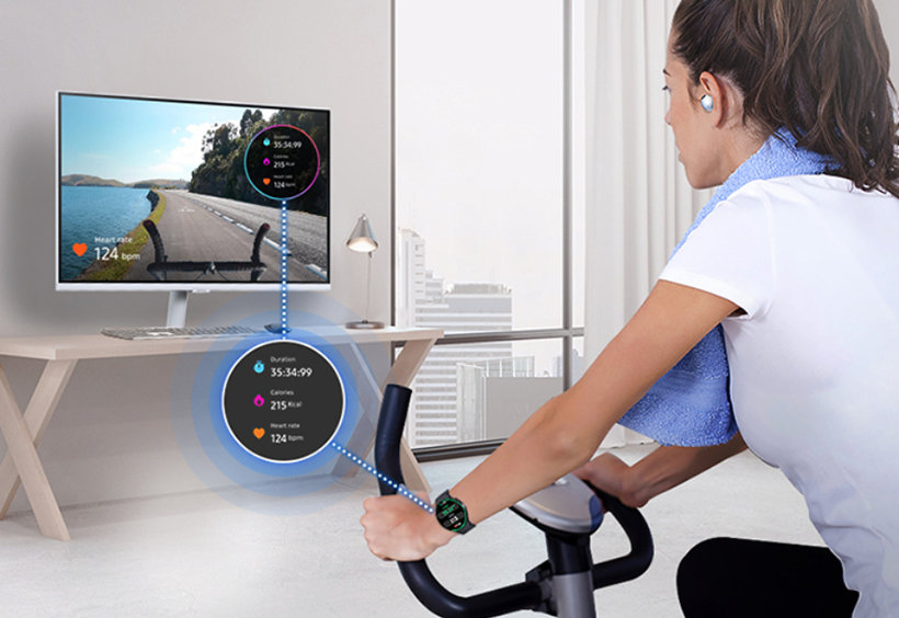 지루할 틈 없는 운동을 즐겨보세요. 스마트 모니터로 TV를 시청하면서 운동 콘텐츠 스트리밍 및 나만의 맞춤 운동을 함께 할 수 있습니다. 갤럭시 워치를 연결하면 실시간으로 헬스 데이터를 알아볼 수 있고 동시에 스트리밍까지 즐길 수 있죠.