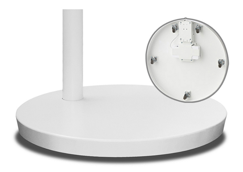 우레탄 재질의 캐스터(바퀴)가 부착되어 쉽게 이동할 수 있으며, 마모 및 소음이 적어 조용하고 편리한 이동이 가능합니다. 또한 바닥판(BASE) 지름이 500 mm로 안정감을 주며, DC 어댑터를 바닥판 밑면에 장착할 수 있어 깔끔하게 사용할 수 있습니다.