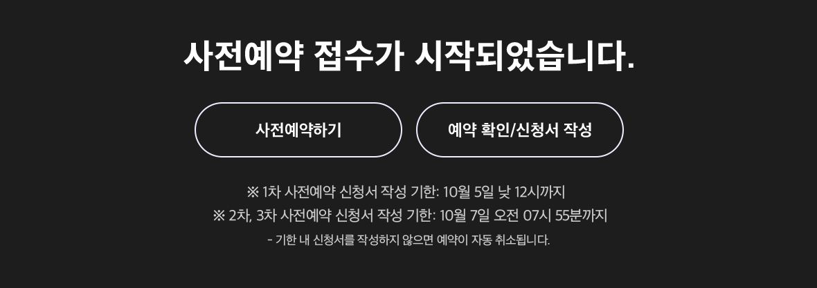 [2차, 3차 사전예약 신청서 작성 마감 기한: 10월 7일(금) 7시 55분까지]