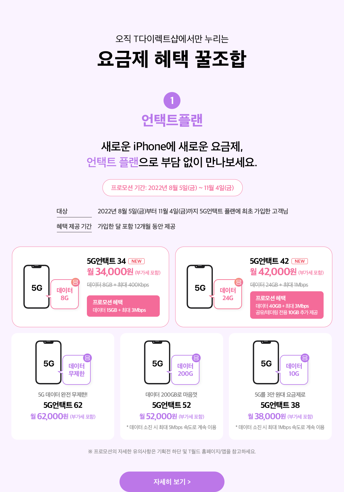 새로운 iPhone에 새로운 요금제, 언택트 플랜으로 부담 없이 만나 보세요.