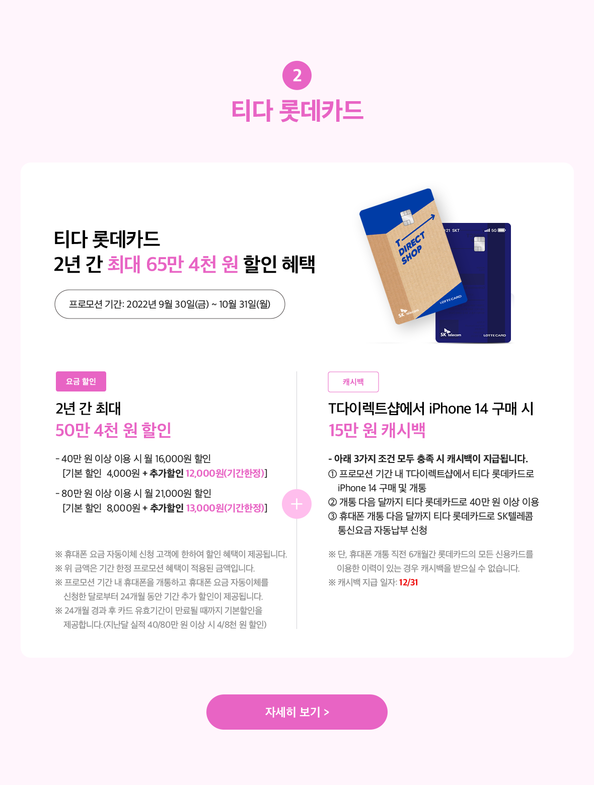 티다 롯데카드 2년 간 최대 65만 4천 원 할인 혜택
