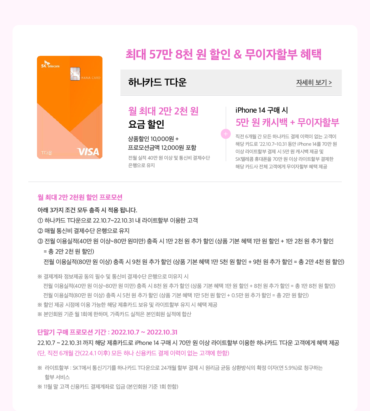 ※ 프로모션의 자세한 유의사항은 기획전 하단 및 T월드 홈페이지/앱을 참고하세요.